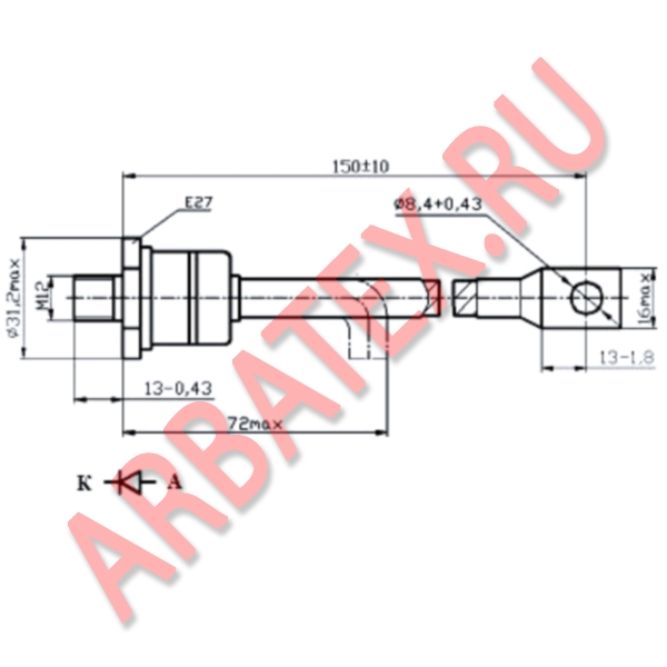 • Uoбp макс, В - Максимальное постоянное обратное напряжение