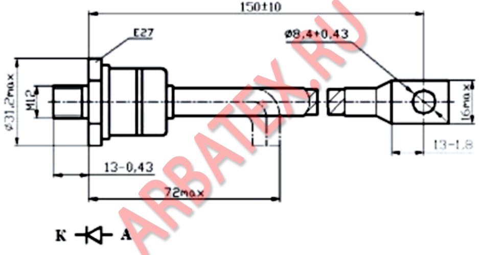 Масса диода не более 180 г.