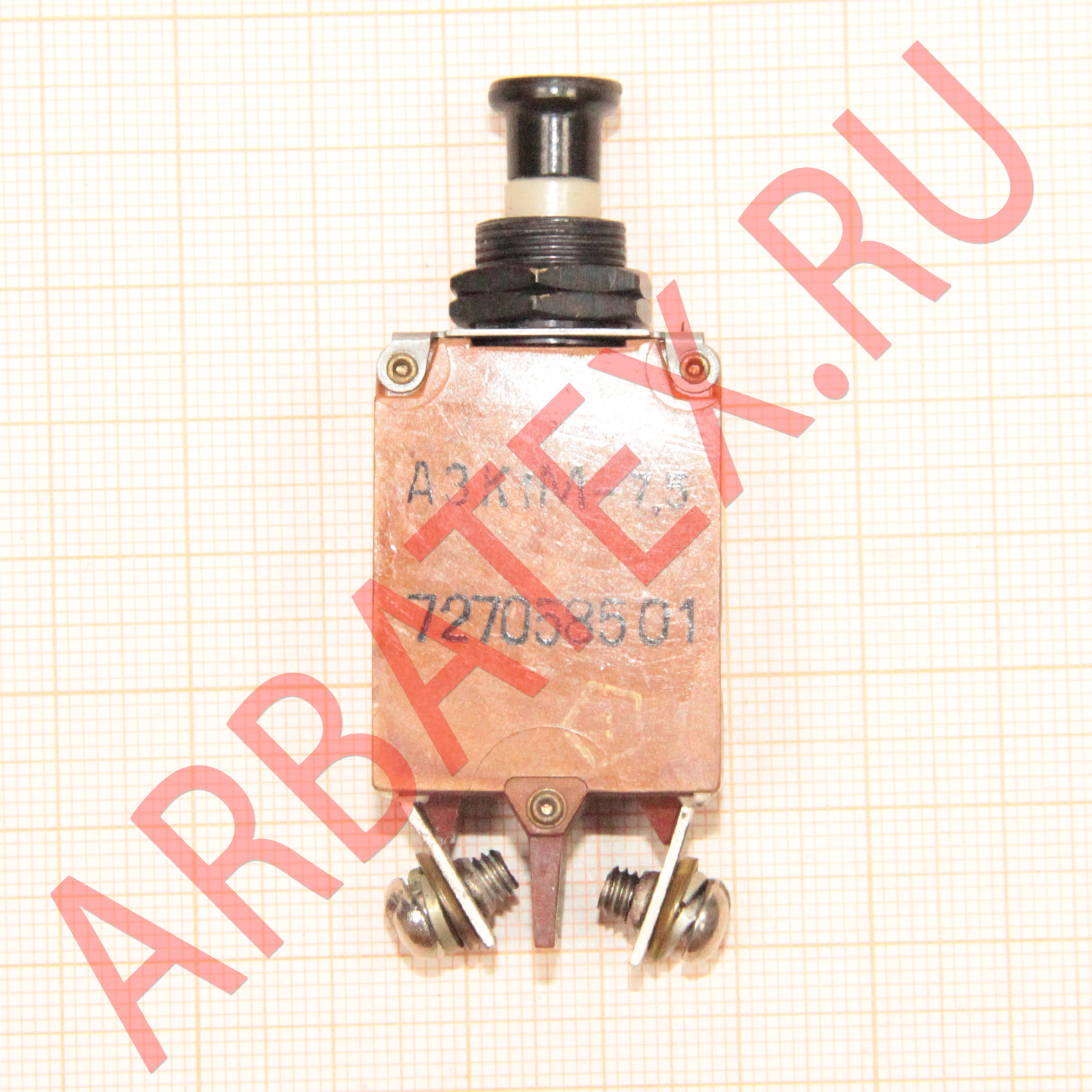 Автомат защиты сети кнопочный однополюсный АЗК1М-7,5 предназначен для защиты электрических цепей постоянного и переменного токов от недопустимых по величине и времени протекания токовых перегрузок и токов короткого замыкания Технические условия: 8Ю3.619.294 ТУ.