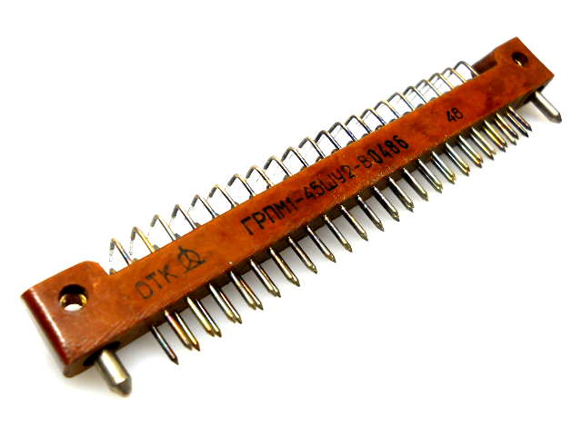 ГРПМ1У-45ШУ2В вилка прямоугольная предназначена для работы в электрических цепях постоянного, переменного, импульсного токов, обеспечивает соединение печатных плат, хвостовики для углового монтажа в отверстие печатной платы.