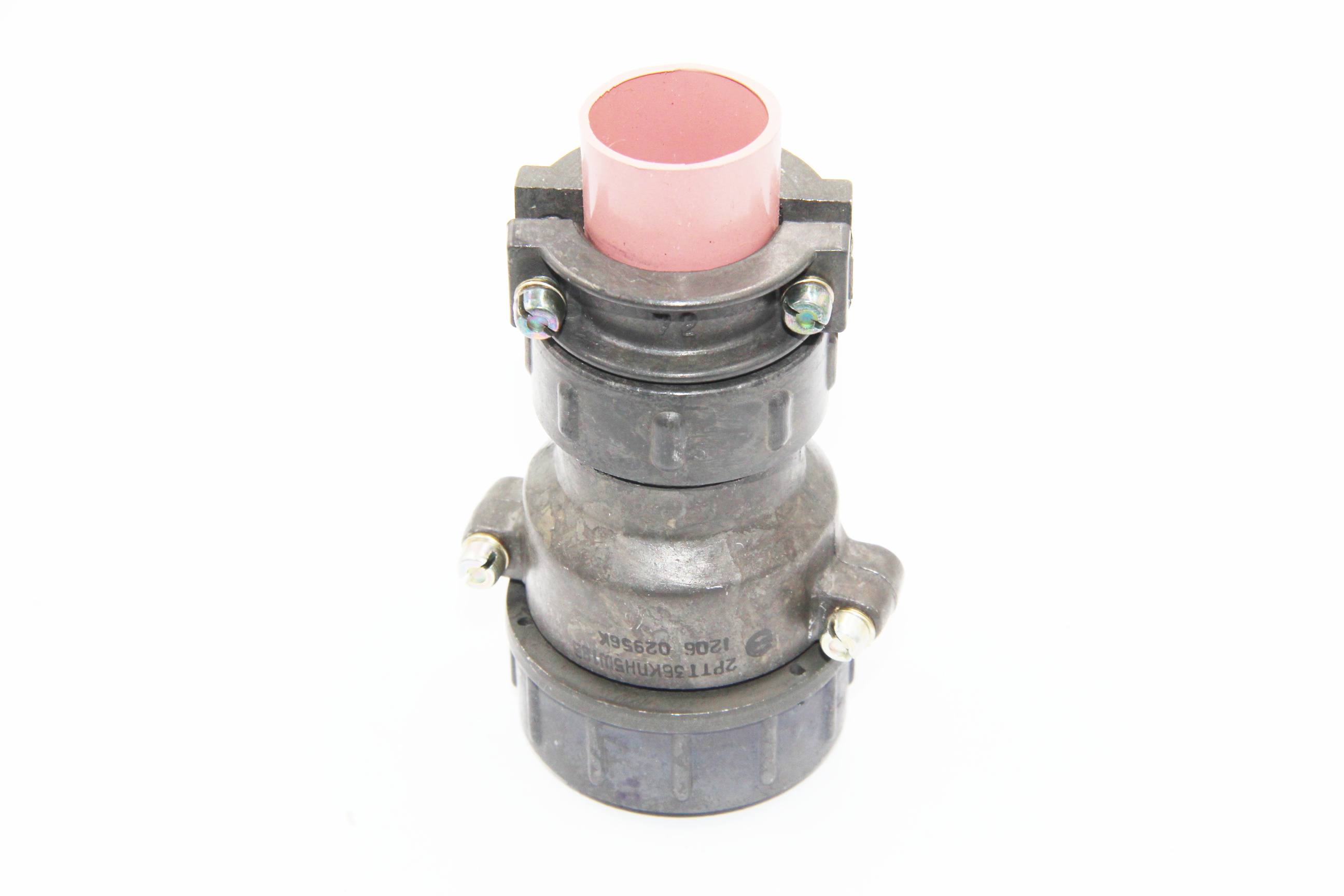 Цилиндрический низкочастотный соединитель 2РТТ36КПН5Ш18В пылебрызгозащищенный, предназначен для работы в электрических цепях постоянного и переменного  токов частотой до 3 МГц при напряжении до 850 В.