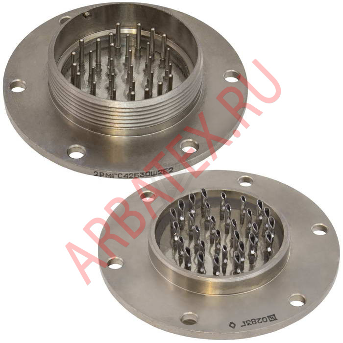Соединитель 2РМГС42Б30Ш2Е2 имеет 30 контактов, диаметром в 1мм которые в свою очередь имеют серебрянное напыление.