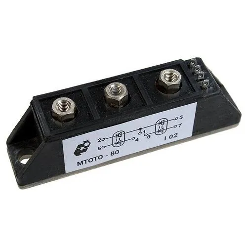 МТОТО-80-13-1А модуль силовой полупроводниковый на основе двух бескорпусных последовательно соединенных кремниевых диффузионных оптотиристоров p-n-p-n, примененяется в цепях постоянного и переменного токов частотой до 500 Гц преобразователей электроэнергии.