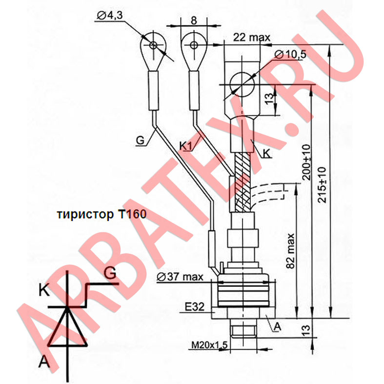 Т160-6 - низкочастотный тиристор штыревого исполнения.