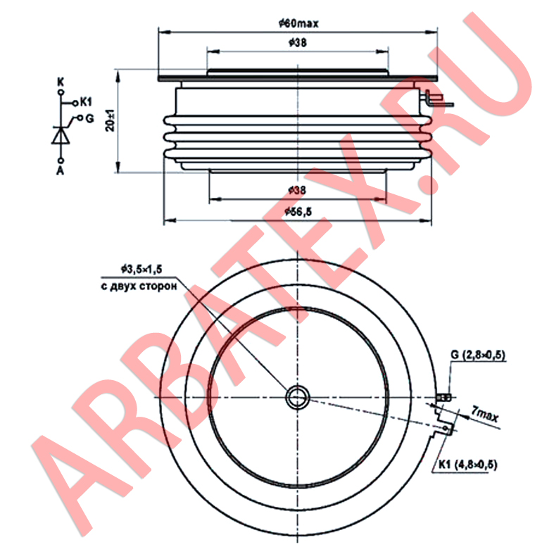 Масса тиристора не более 240 г.